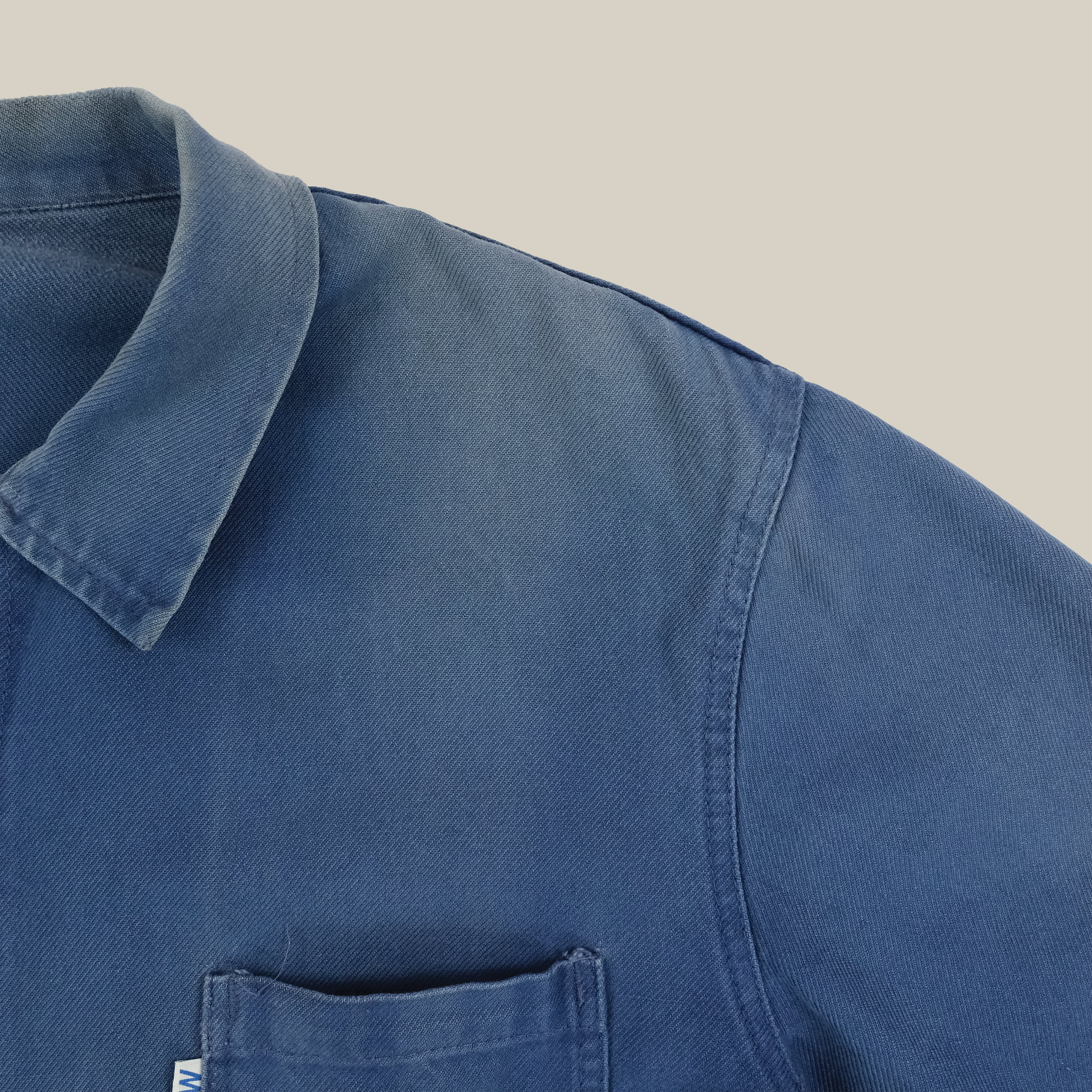 The chore coats first became popular among various laborers including farmers and railroad engineers in the 19th-century France. These garments were often constructed from heavyweight cotton fabric or moleskin in order to withstand the rough work environments.
